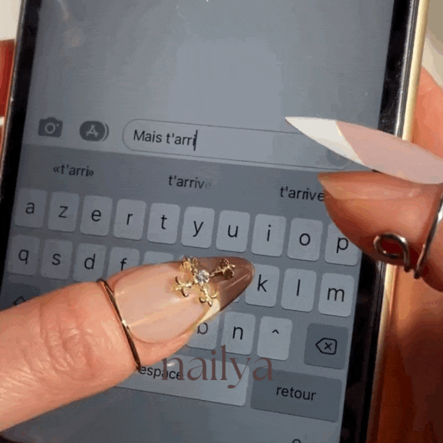 Veuillez noter que nos bagues Nailya Rings sont compatibles avec la plupart des faux-ongles disponibles sur le marché. Il vous suffira simplement de les coller à l'emplacement dédié avec un patch autocollant, aussi appelé "gel pad" (recommandé) ou de la colle pour faux-ongles